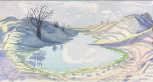 “With the first of these studies I was thinking, after centuries of attrition, how like a Capability Brown landscape the flooded Dyke Hills look: designed purely for aesthetics and romance. With the second I was wondering how many people over hundreds of generations had stood, in a similar place, at the top of the Dyke Hills, low winter sun behind them, looking at their shadow on a skeletal hawthorn”